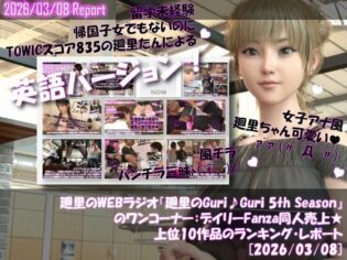 3DCG 【▲20】英語★廻里の自撮りWEBラジオ『廻里のGuriGuri(グリグリ)5thシーズン』のワンコーナー:デイリーFanza同人売上★上位10作品のランキング・レポート[2026/03/08]【Libido-Labo】